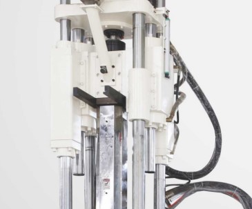 · 立式直壓鎖模,立式射出。下模固定,上模移動。